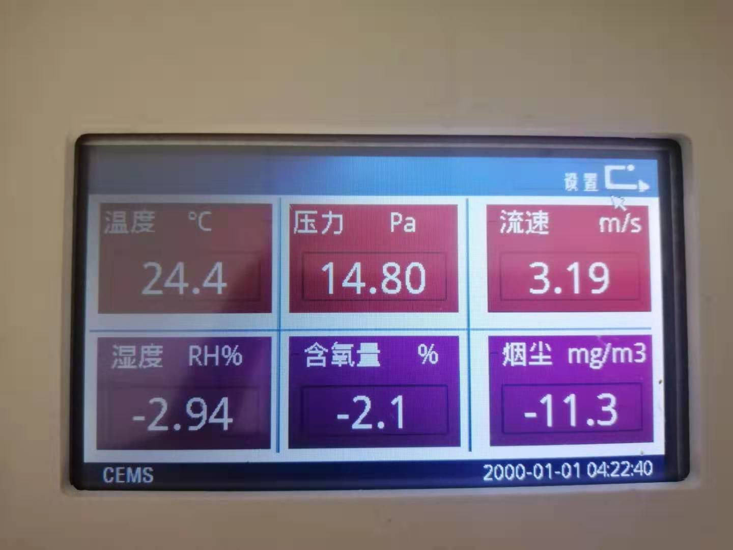 设备有自动反吹的控制功能,在参数设置里面可设置吹扫时间、采样时间、烟囱面积、速度场系数和皮托管系数等。开关量有手动控制按键,自行控制采样、反吹和设备维护。